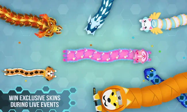 Personal expression is a huge part of the experience, with a massive library of skins to unlock. Players can move away from the standard colored worm and choose designs ranging from animals and ninjas to robotic creatures and mythical beasts. These skins are often unlocked by completing specific milestones or high-score challenges. The “stylized” art direction ensures that even with dozens of unique character designs on screen, the action remains readable and visually distinct.